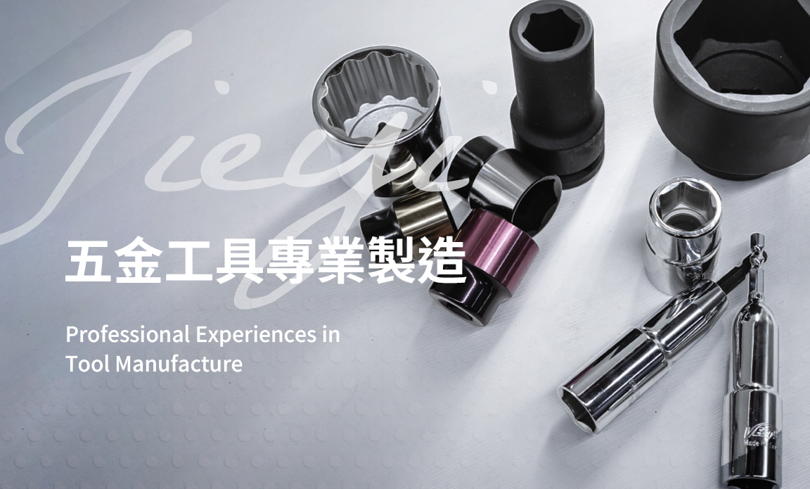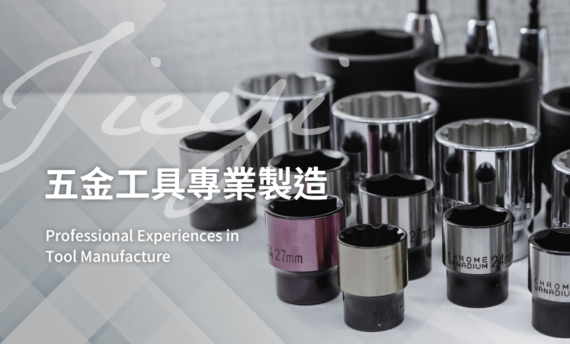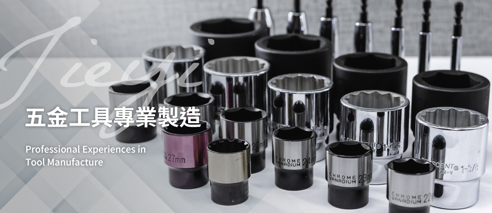 杰毅有限公司專研五金工具─套筒表面研磨拋光、打字雕刻及表面滾花。2015成立了套筒製造完成品部門,並以3/4”、1”手動套筒、氣動套筒為主,1/4”、3/8”、1/2”手動套筒為輔為公司經營方針。我們所有的產品皆符合DIN跟ANSI標準。
